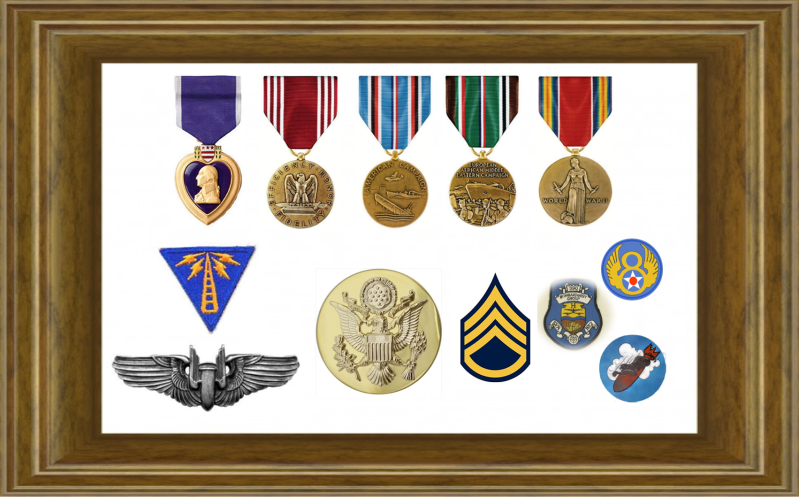 | Award: | Purple Heart, Good Conduct Medal, American Campaign Medal,European-African-Middel Eastern Campaign Medal,World War II Victory Medal. Gunner badge, Radio operator specialist. |
