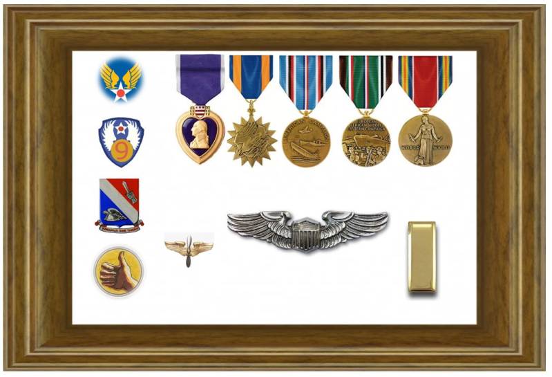 | Onderscheidingen / Awards | Purple Heart ,Air Medal, American Campaign Medal, European-African-Middle Eastern Campaign Medal, World War II Victory Medal, Army Air Force Pilot Badge. |