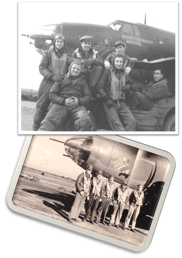 March 26th, 1944, the Foster crew probably had the day off, because the "Toid Boid" was taken out by a rookie crew (the Reese crew) on a maximum effort raid on Ijmuiden, Holland. They took a direct hit in the bomb bay and went down near Ijmuiden.After that, the Foster crew flew most of their missions in plane #41-31901 VT-A, possibly also called "Toid Boid".